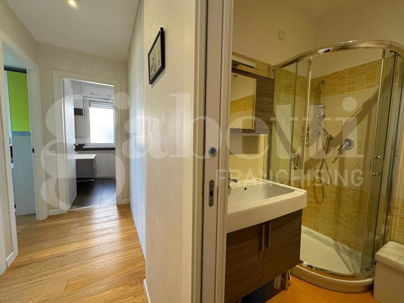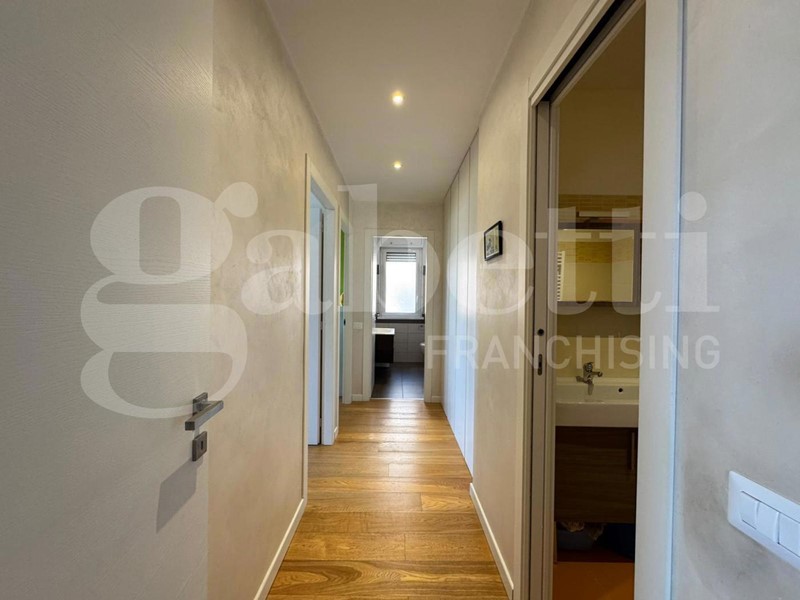 L'abitazione, di 96 mq, si distingue per una disposizione interna funzionale e accogliente, ideale per chi desidera spazi ben organizzati e luminosi. L'ingresso si apre su una zona giorno ampia e confortevole, composta da un salone luminoso e da una cucina abitabile. Dal disimpegno si accede poi alla zona notte, dove troviamo due camere da letto e due bagni, entrambi finemente rifiniti.