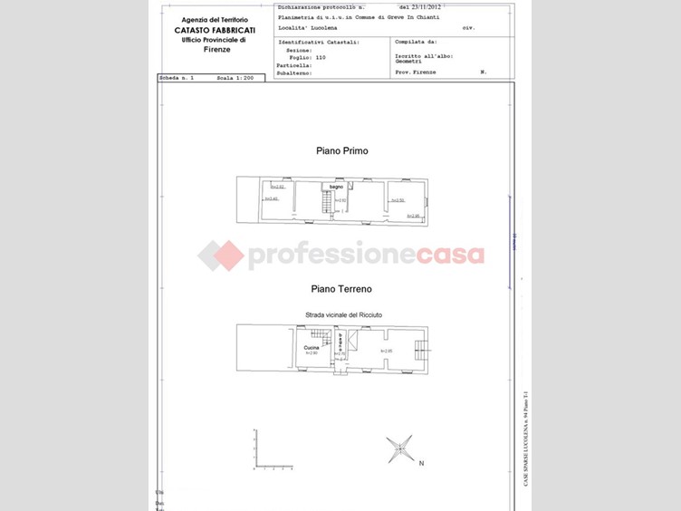 * Piano terra: soggiorno con vista panoramica, cucina, bagno di servizio e magazzino;