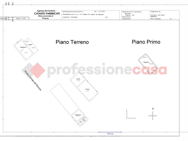 * Piano terra: soggiorno con vista panoramica, cucina, bagno di servizio e magazzino;