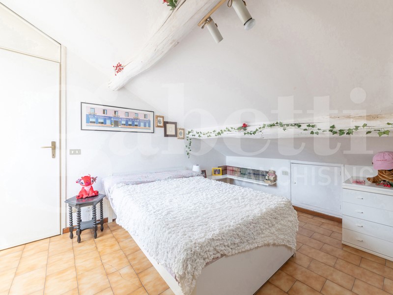 La zona notte comprende due camere da letto caratterizzate da travi a vista e infissi e tapparelle automatizzate.