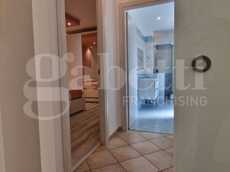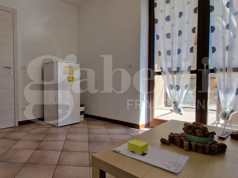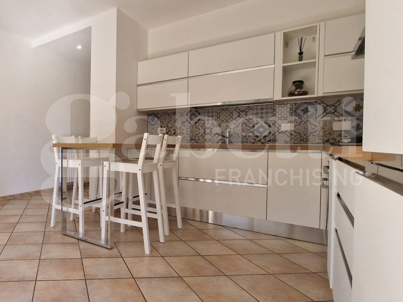 L'alloggio si apre su un ingresso con corridoio che accompagna verso una cucina abitabile arredata, una camera matrimoniale completa, una cameretta da sfruttare a seconda delle esigenze, e un bagno finestrato.