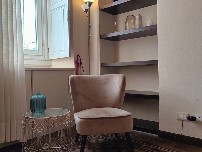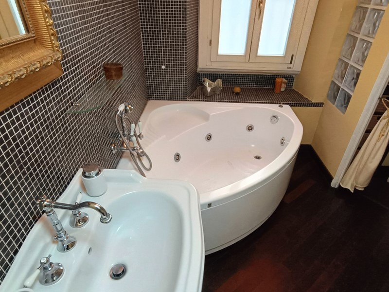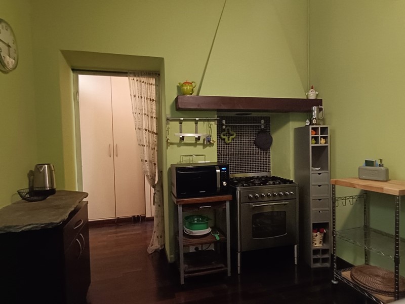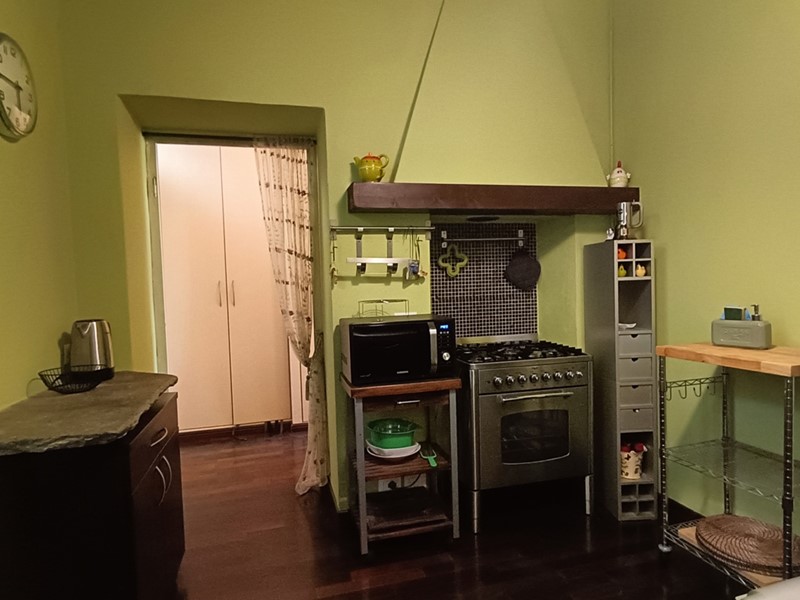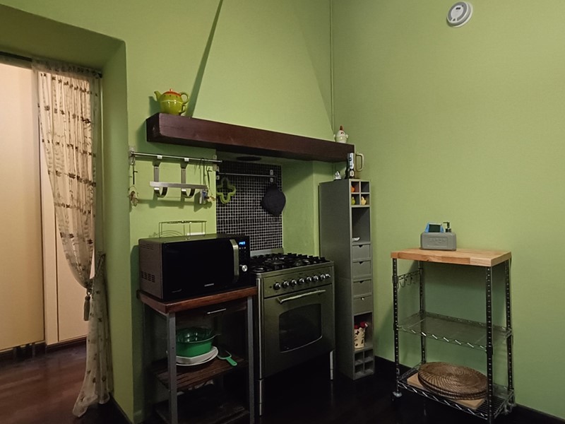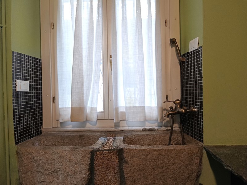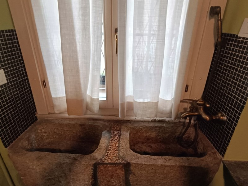 Nella ristrutturazione dell'appartamento si sono voluti recuperare molti elementi caratteristici dell'epoca , il pavimento del soggiorno è costituito da delle favolose cementine, in cucina troviamo il soffitto a cassettoni e un lavandino in pietra .
