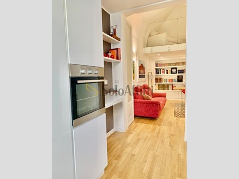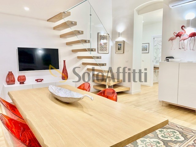 Via Napoli, a pochi passi dal centro in zona con servitissima di negozi di ogni genere, al 1° senza ascensore, ampio e rifinitissimo 3 vani arredato con arredi di design composto da: ingresso con disimpegno, ampio salone open space, cucina abitabile fornita di lavatrice/lavastoviglie/microonde, ampia camera studio con soppalco, camera da letto, bagno con anti bagno e fornito di doccia e doppio lavabo. L'immobile dispone di ottime rifiniture tra cui: pavimento in parquet oltre a pavimentazione d'epoca, infissi in vetrocamera con zanzariere, caminetto, climatizzatori caldo/freddo, 2 ripostigli, 2 balconi di cui uno esterno ed uno interno verandato.