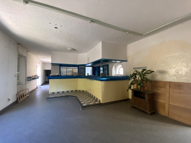 Al piano terra si trovano gli ambienti un tempo destinati a bar e ristorante: una zona bar, una cucina con forno a legna, e una sala clienti luminosa con dehor finestrato che offre una splendida vista sulla vallata.