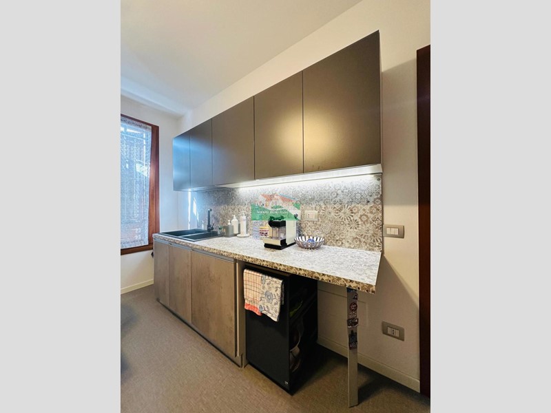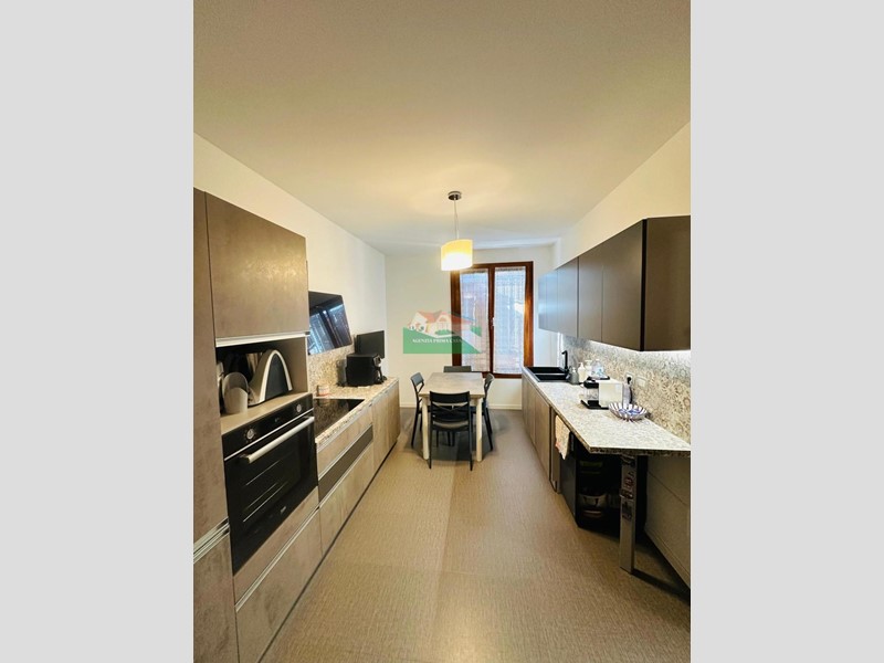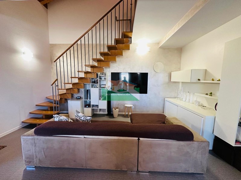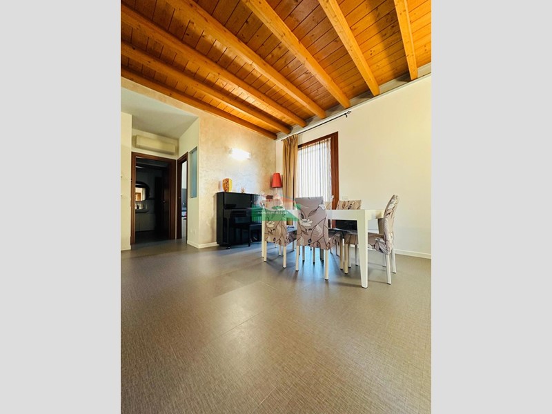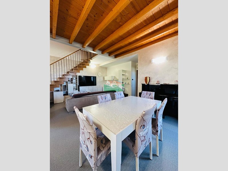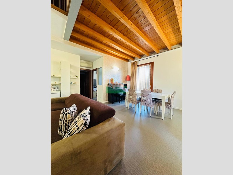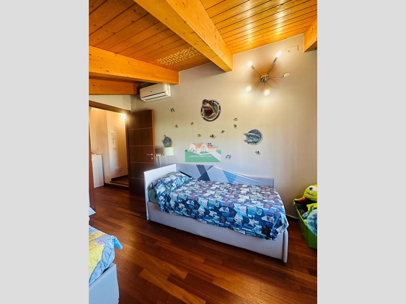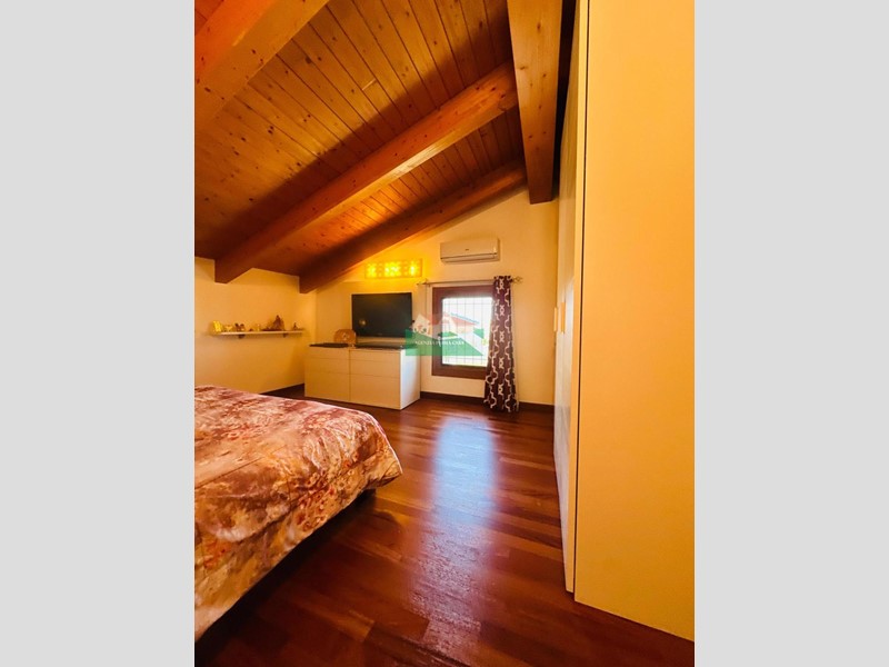 All'interno si compone da ingresso su ampia e luminosa sala, cucina abitabile, disimpegno, studio, camera matrimoniale, bagno finestrato con box doccia e lavanderia al piano superiore mansardato sono presenti altre due camere da lettoe bagno finestrato con box doccia e vasca idromassaggio.
