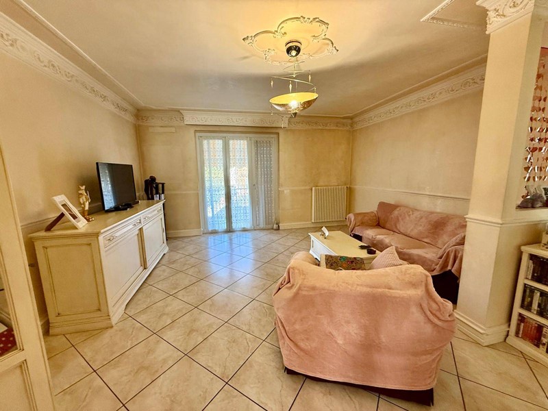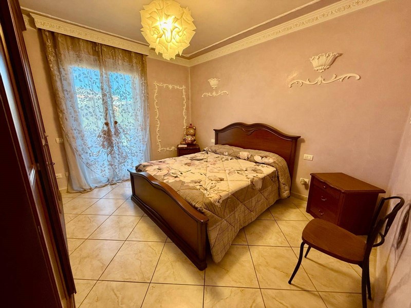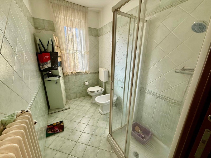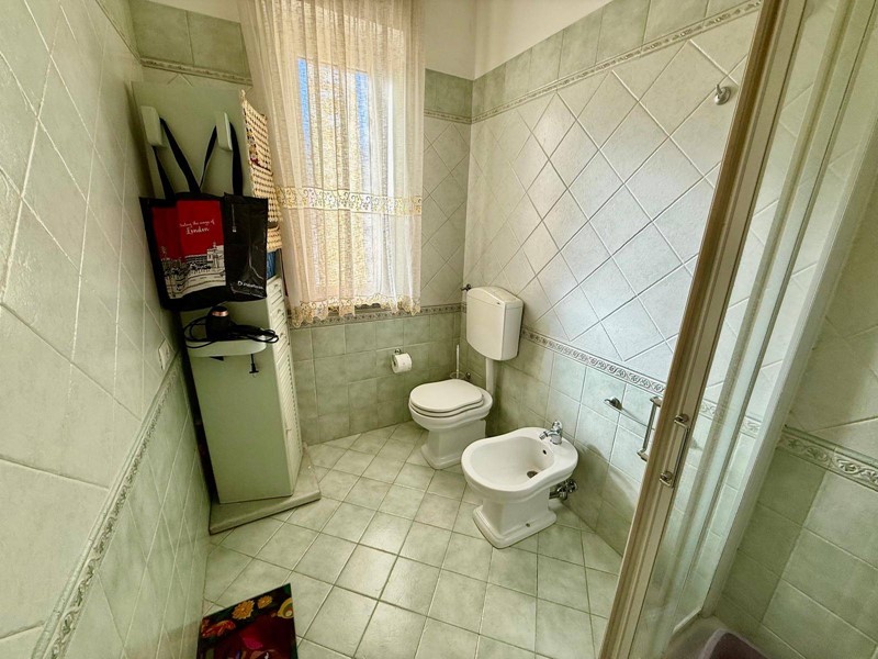 Al primo piano si trova la luminosa zona giorno con salone e cucina a vista, due camere da letto, bagno con antibagno e balcone.