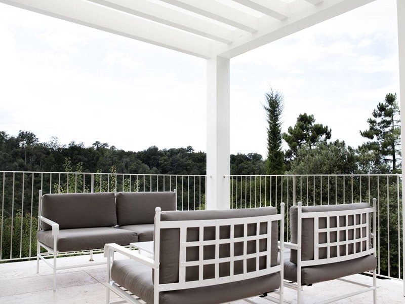 Allingresso su ampia terrazza e alluscita della cucina sono state installate due pergole bioclimatiche.
