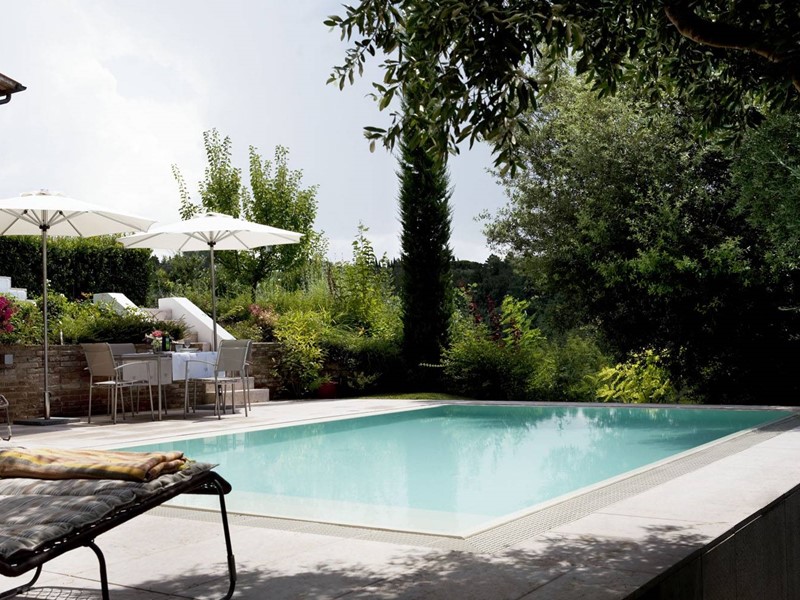 Bellissima villetta bifamiliare di Design, LIBERA SU QUATTRO LATI con piscina e fantastica vista panoramica immersa nella Natura della campagna di Montopoli in Val dArno località Marti provincia di Pisa, silenzio, riservatezza e relax.