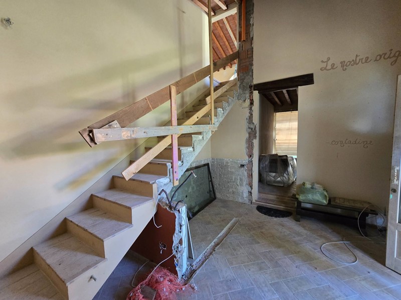 Laltra porzione da rifinire è composta al piano terra da ampio soggiorno, predisposizione piccolo bagno e cucina abitabile. Salendo una scala a vista si raggiunge il sottotetto dove è possibile realizzare due camere e altro bagno. Al piano seminterrato collegato da scala esterna, locale uso lavanderia con doccia. La proprietà è dotata di porticato con possibilità di chiusura e recupero del volume.
