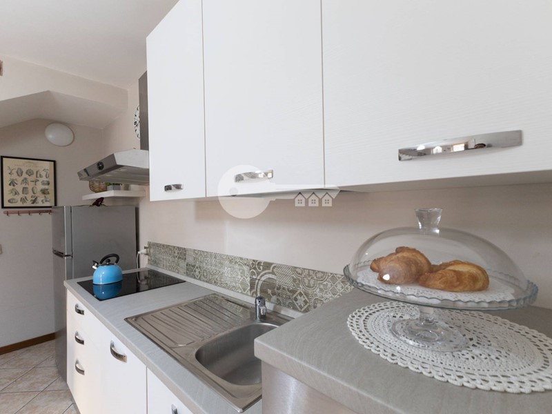 Labitazione si apre sulla zona giorno, composta da soggiorno con cucina a vista e pratico spazio lavanderia ricavato nel sottoscala.