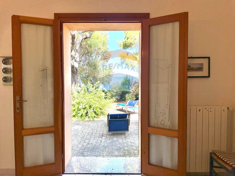 Accediamo alla proprietà attraverso una terrazza esclusiva di circa 200 mq , con vista mare mozzafiato sul golfo di Lacona e le sue splendide acque , qui si trovano piante ombreggianti , siepi e la caratteristica e profumata macchia mediterranea , dove poter mettere arredi per trascorrere meravigliose ed indimenticabili giornate all'aria aperta in assoluta tranquillità e riservatezza in un ambiente magico che ti trasporta lontano dalla routine lavorativa .