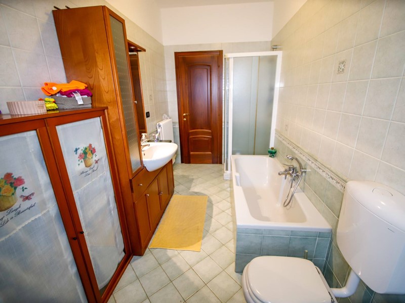 Al primo piano, collegato da scala esterna, l'abitazione principale, di oltre 150 m² tutti su un unico livello, con cucina abitabile, salotto, tre camere e doppi servizi, di cui uno padronale in camera da letto.