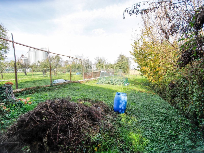 Nel retro dell'abitazione, una tettoia di generose dimensioni anticipa il terreno esclusivo, chiuso e cintato di circa 300 m².