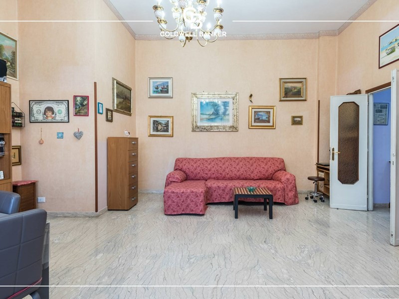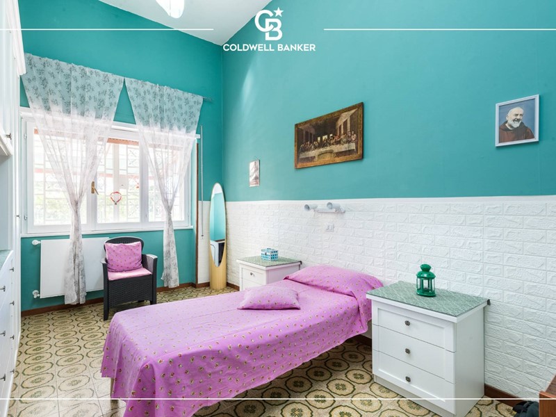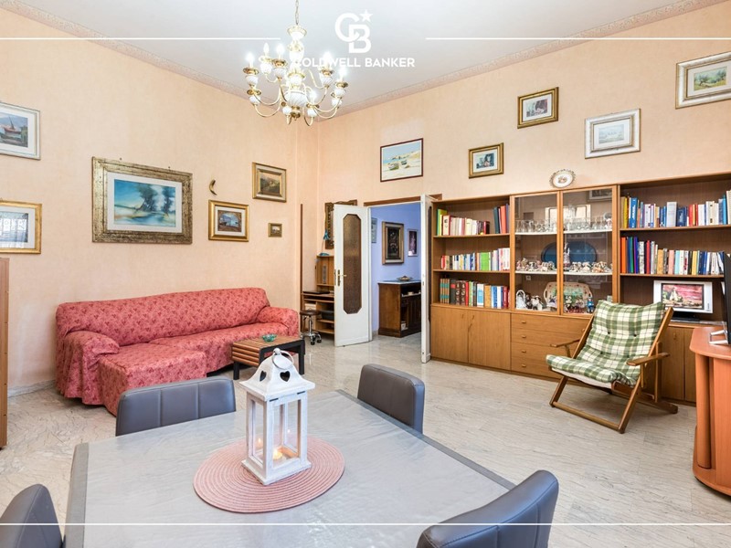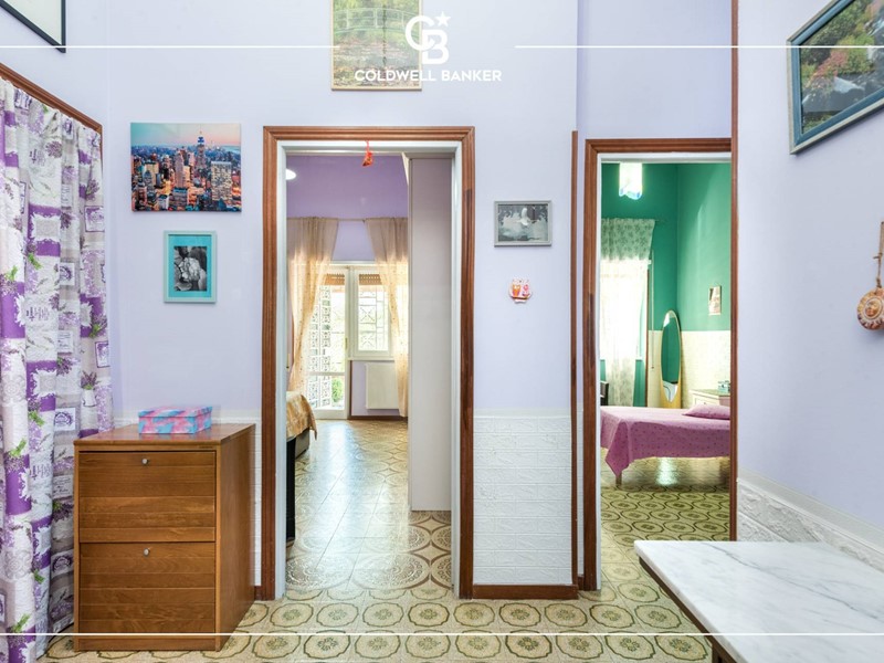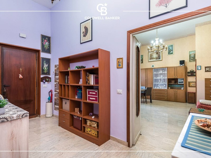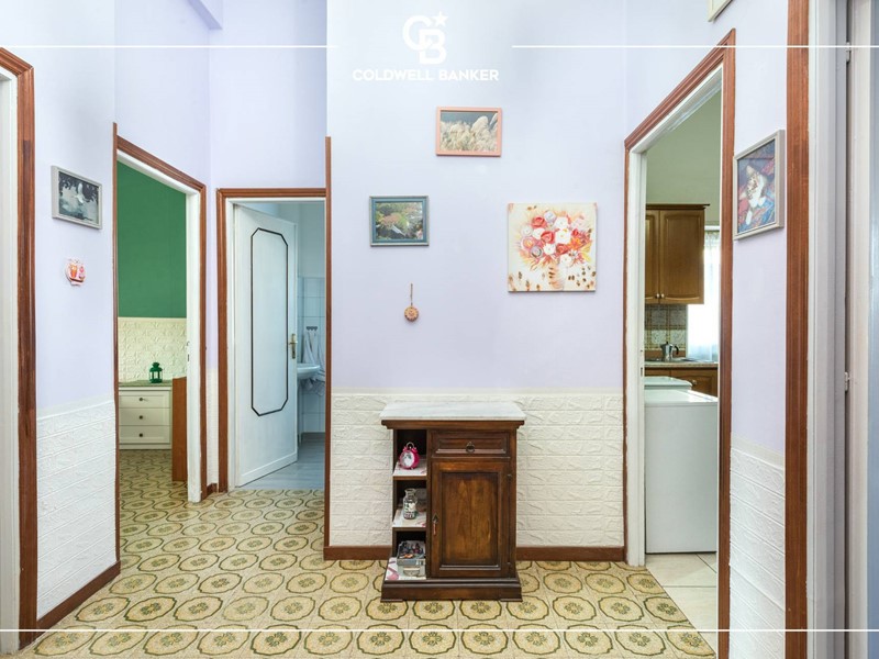 L'appartamento è disposto su un unico livello; gli spazi interni risultano comodi e ben distribuiti, tipici dell'epoca di costruzione, presentano un pratico ingresso che conduce sulla sinistra ad un ampio salone ben illuminato con affaccio al giardino di ingresso mentre invece sulla destra si accede ad un arioso disimpegno verso la cucina abitabile, un ripostiglio, la camera matrimoniale, una camera doppia capace di ospitare due ragazzi ed i due servizi entrambi finestrati.