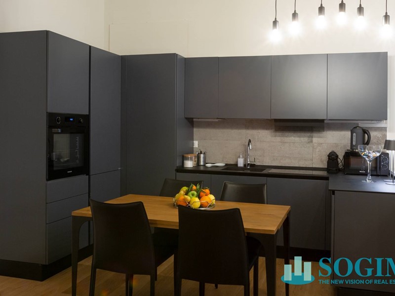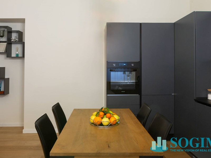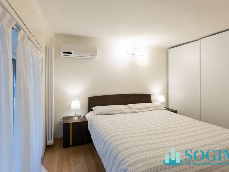 L'appartamento viene affittato completamente arredato e corredato con mobilio elegante e raffinato, blocco cucina con elettrodomestici, aria condizionata, tapparelle elettriche, wifi, porta blindata.