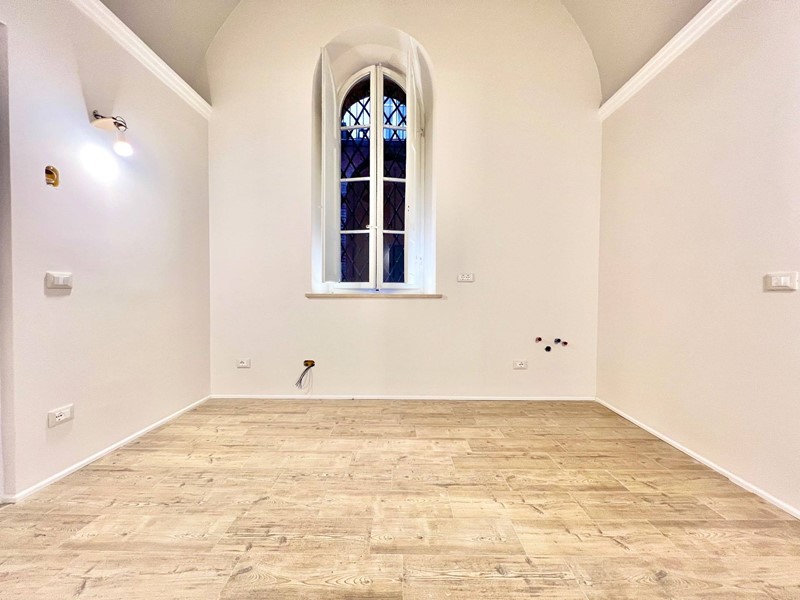 Gli ambienti, curati nei minimi dettagli, si aprono su un open space con cucina e soggiorno, dove materiali pregiati e linee essenziali dialogano con lautenticità delle architetture originali.