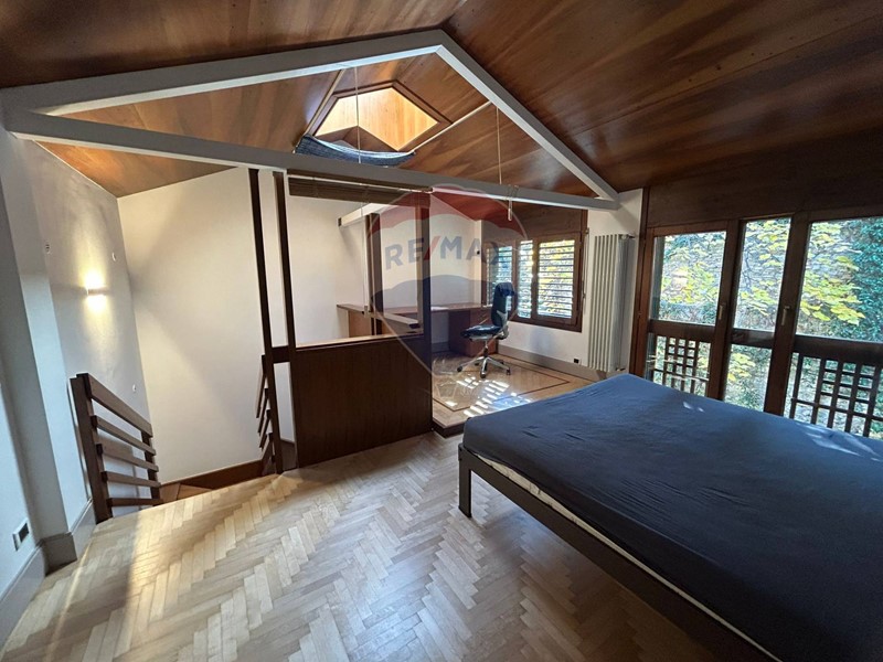 Al piano superiore si sviluppa la zona notte, composta da una camera matrimoniale, un piccolo studio e un bagno finestrato.