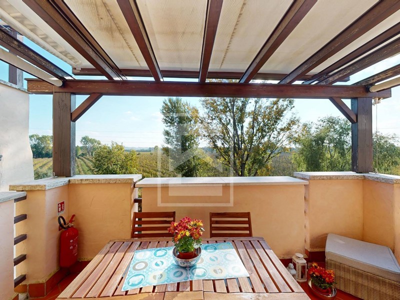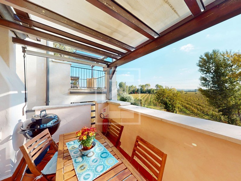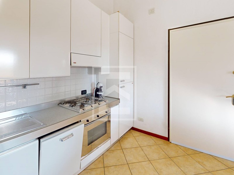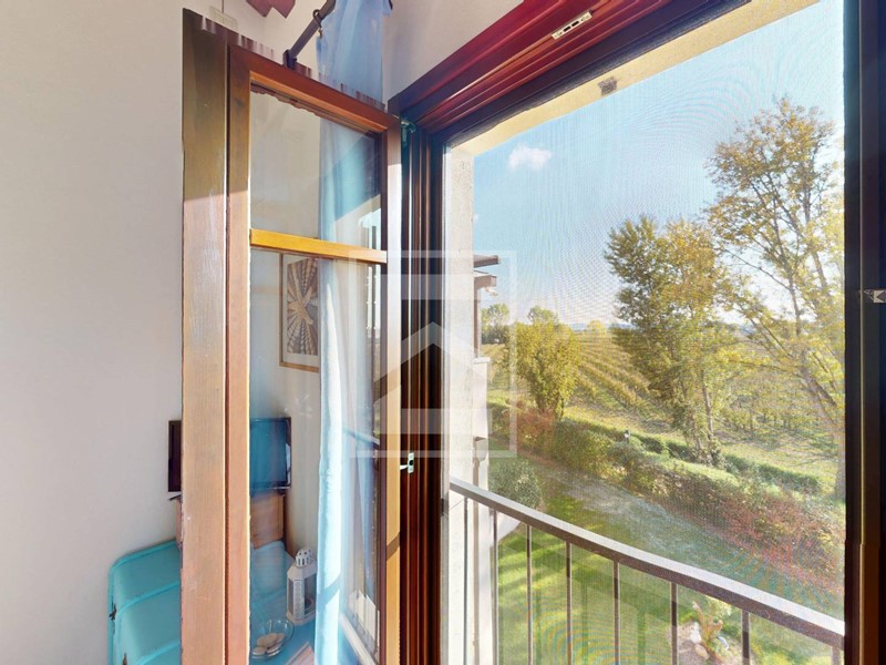 Entrando troviamo zona giorno con cucina open space luminosa e accogliente, tramite ampia vetrata si accede al terrazzo dalle generose dimensioni con barbecue, ideale per pranzi e cene all'aperto con vista incantevole sul verde circostante con esposizione sud. Tramite disimpegno si accede alla zona notte con camera matrimoniale, provvista di armadio e porta finestra, ed un bagno finestrato e rifinito con gusto.