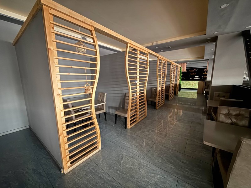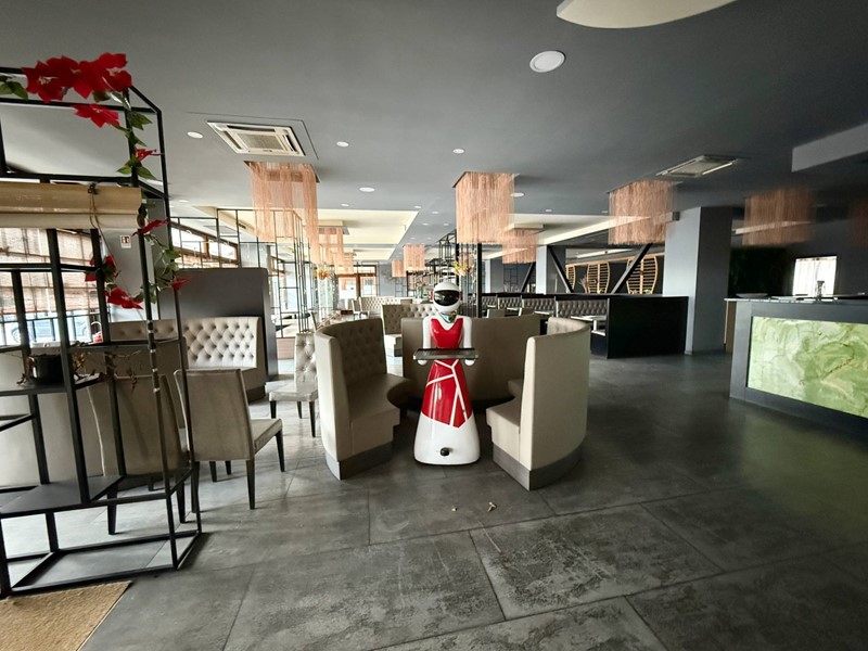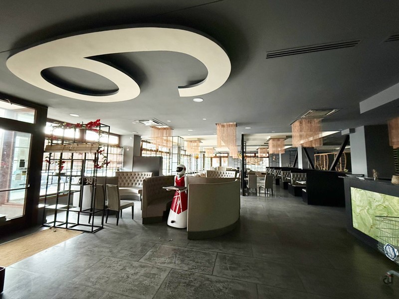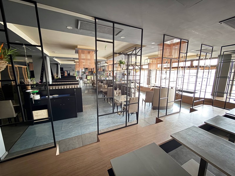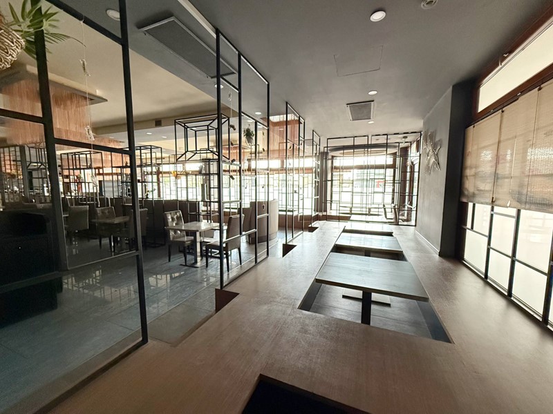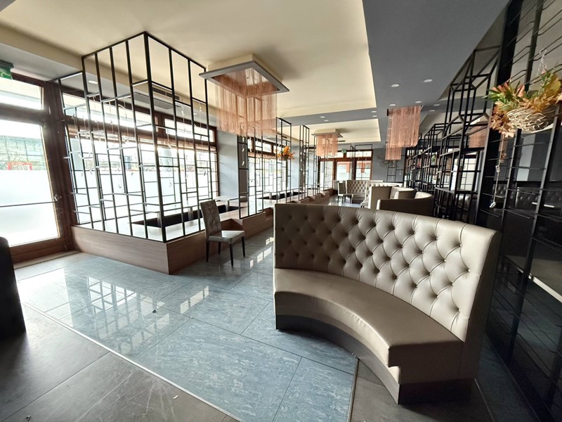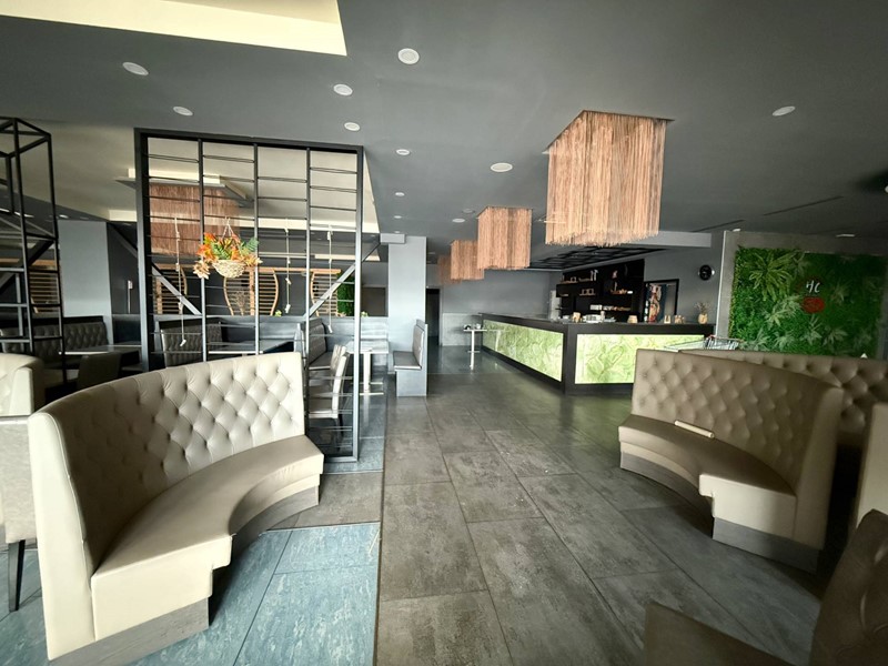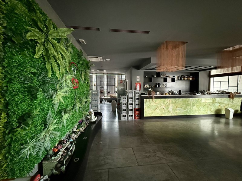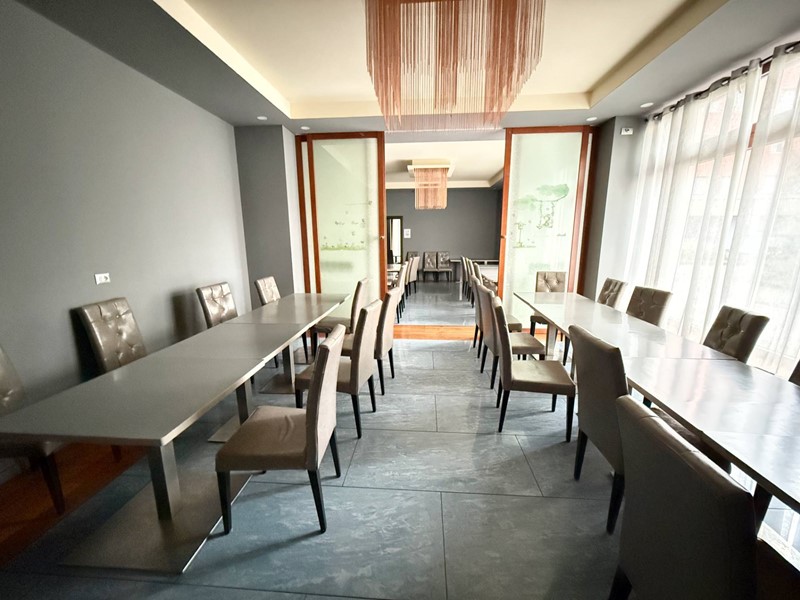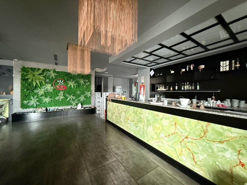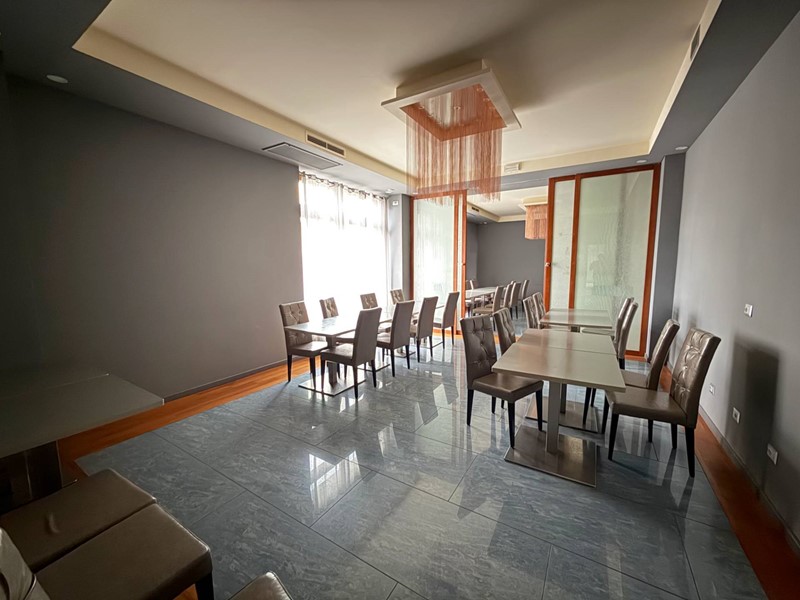 Situato al piano terra, dispone di unampia sala con oltre 300 posti a sedere, un ingresso con bancone, un bancone di servizio, bagni separati per uomini, donne e persone con disabilità, una cucina completamente arredata e diversi depositi per lo stoccaggio.