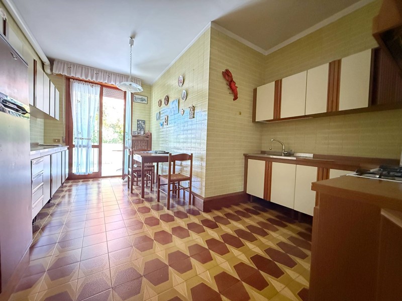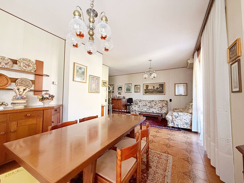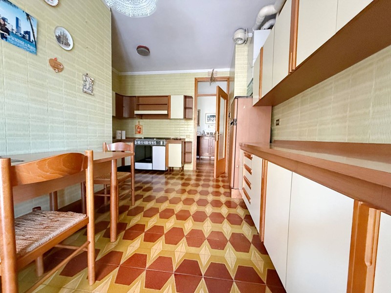 La zona giorno è composta da una doppia entrata, sia indipendente dall'esterno con quattro gradini che all'interno della palazzina, un ampio soggiorno e sala da pranzo, una cucina abitabile e un bagno di servizio.