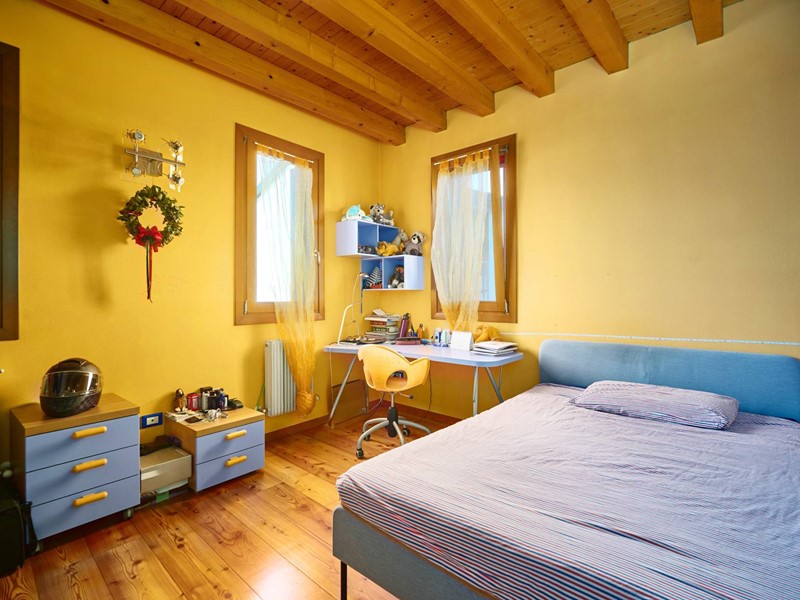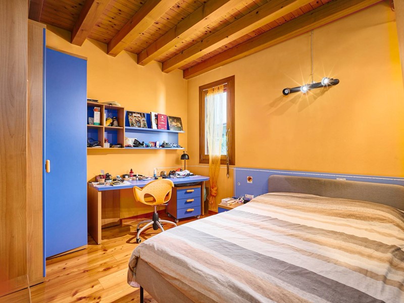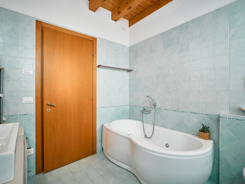 Ampia camera da letto matrimoniale, facilmente divisibile in due ambienti separati, e bagno finestrato con vasca idromassaggio.