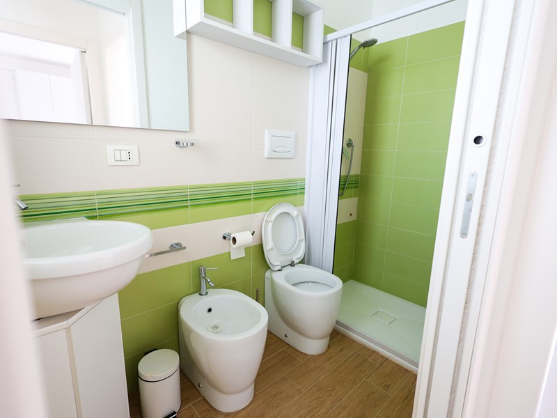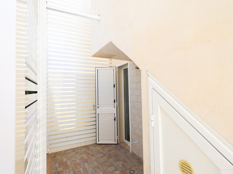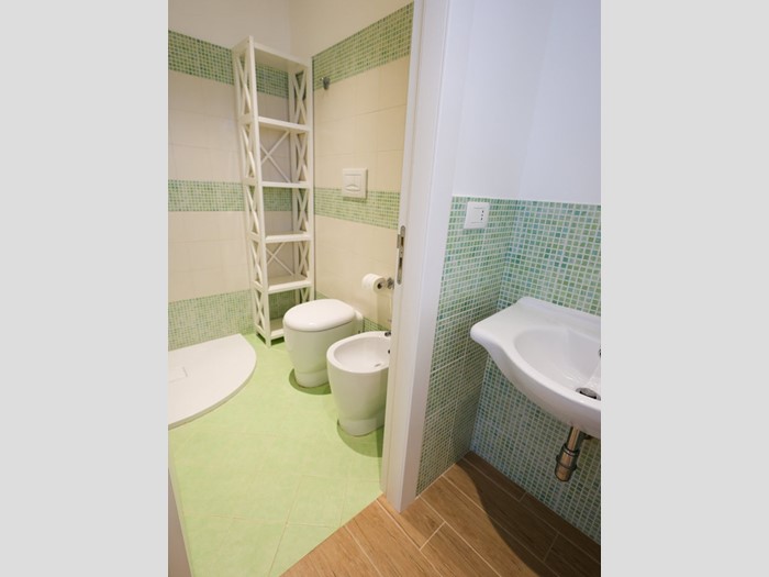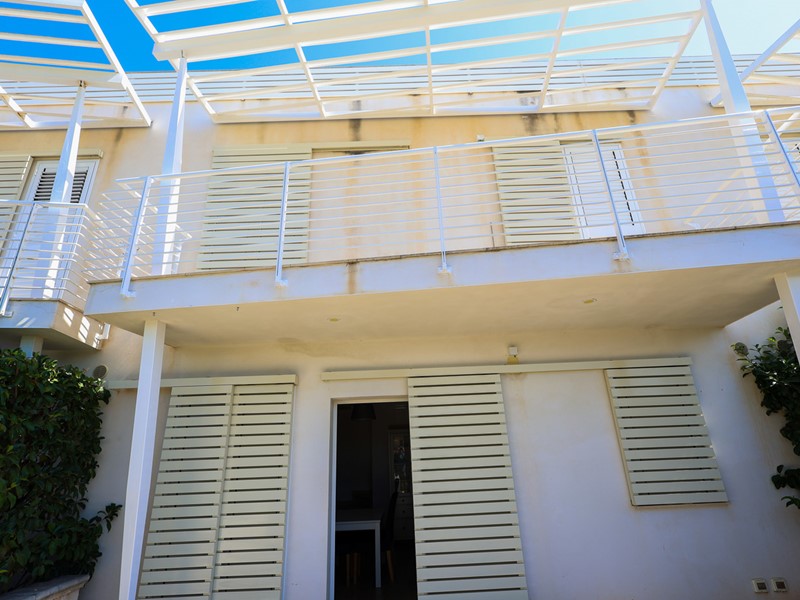 Salendo le scale al piano primo troviamo una camera matrimoniale, una camera doppia, il bagno completo di doccia ed un bel balcone con vista mare.