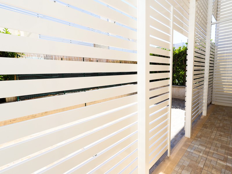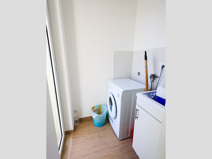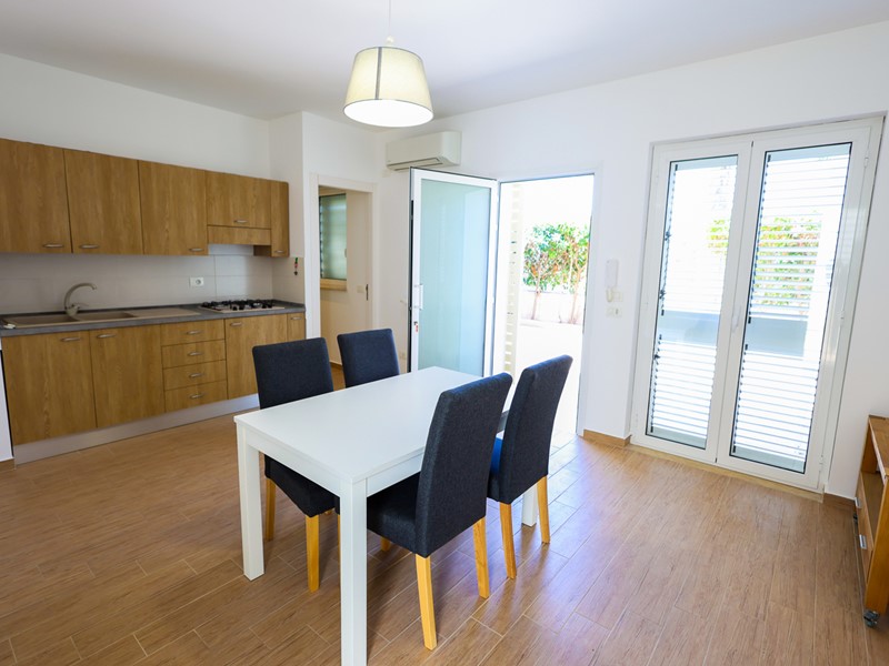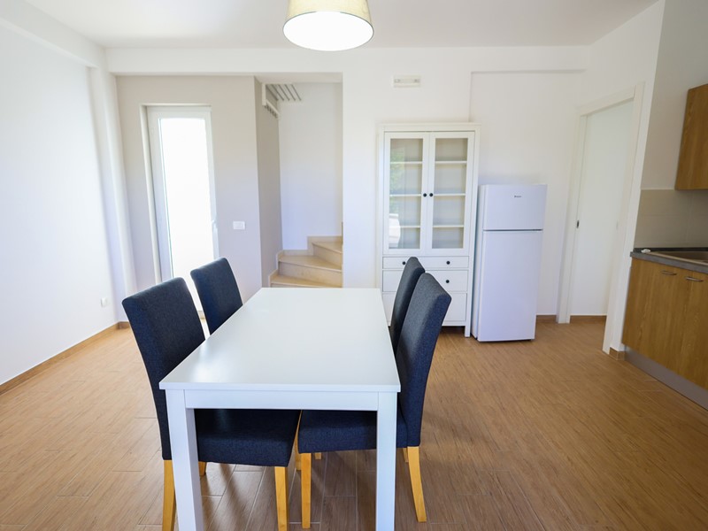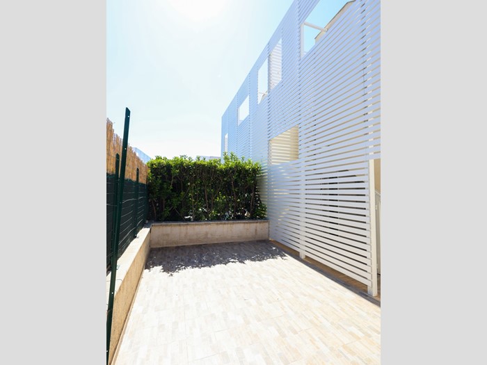 Il villino si compone nel seguente modo: si accede alla villetta da un cortile condominiale in una veranda con giardino di proprietà esclusiva, dalla porta d'ingresso al piano terra si accede direttamente al locale soggiorno con cucina a vista, un bagno con antibagno e doccia ed un locale lavanderia. Sul retro una spaziosa veranda con giardino ove si può anche realizzare una zona spa e relax.