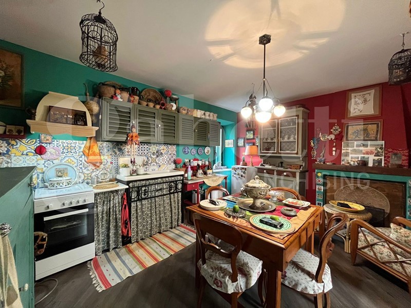- al P.1°: cucina ab.le con CAMINO, soggiorno doppio, lavanderia e bagno del piano.
