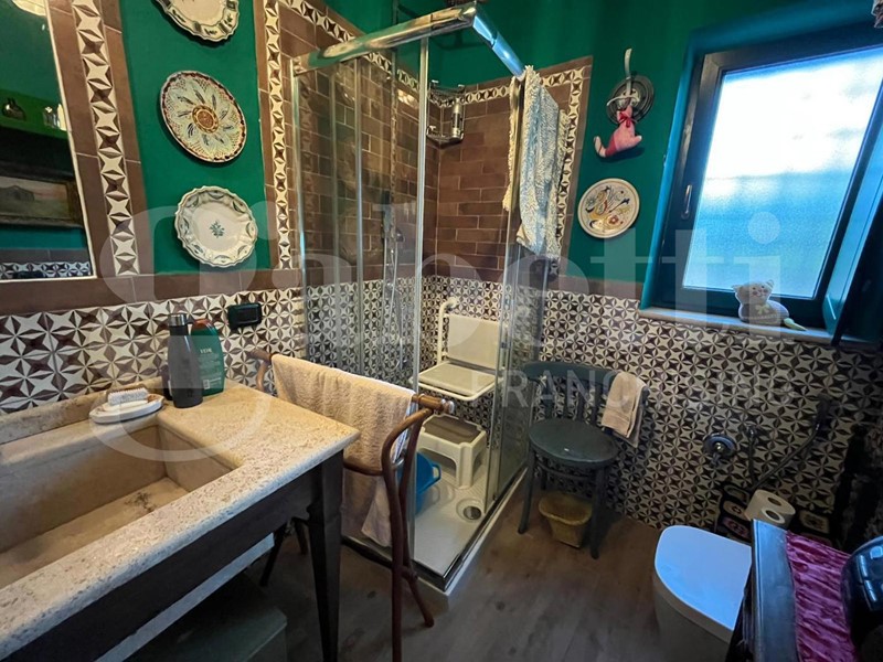 - al P.T. : tavernetta di circa 30 mq, ingresso su doppio soggiorno con angolo cottura rifinito con preziose mattonelle settecentesche e pietra viva, studio/sala hobby con ingresso indipendente e bagno, 1 camera da letto con bagno in camera.