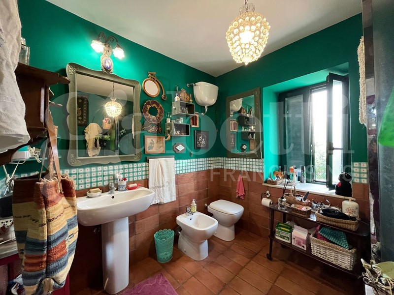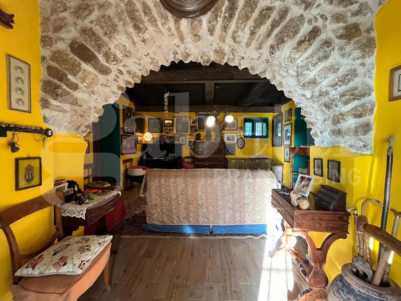 Completa la proprietà ANTICA AIA rifinita in pietra, FONTANA con mattonellato settecentesco, CANTINA di circa 12 mq e GIARDINO PRIVATO di 2.400 mq con ulivi e alberi da frutto.