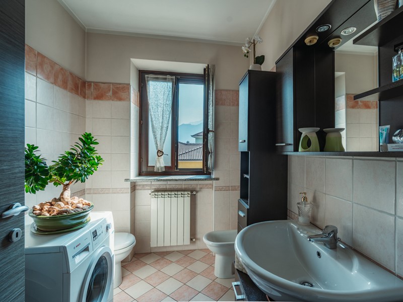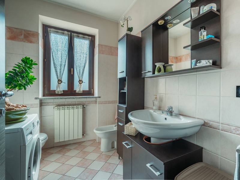 Il bagno finestrato è moderno e ben rifinito, con luce naturale e rivestimenti curati, in linea con lo stile sobrio e raffinato dell'appartamento.