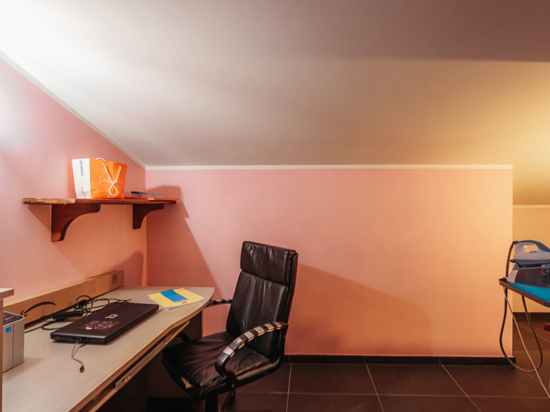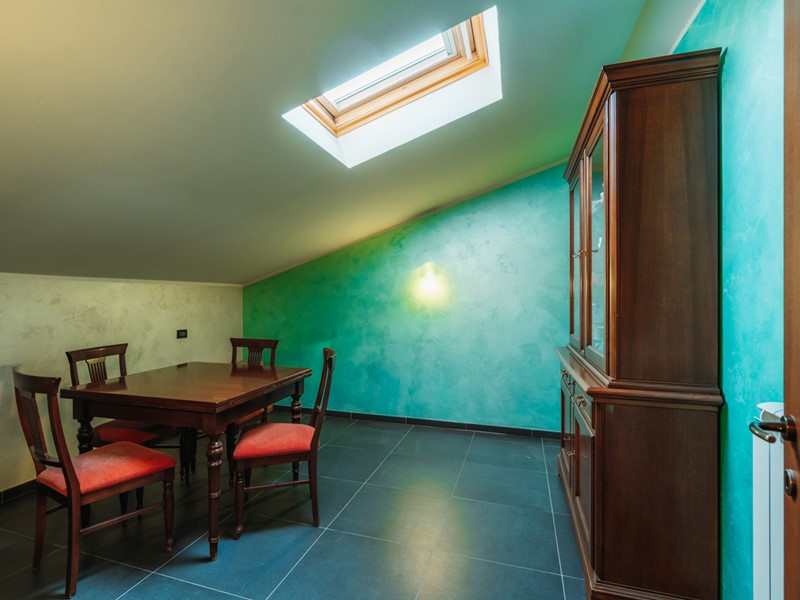 Salendo, il piano mansardato sorprende per atmosfera e comfort: tre camere con finestre VELUX, una con cabina armadio, le altre arricchite da locali di sgombero, e un soffitto coibentato che assicura temperatura ideale in ogni stagione.
