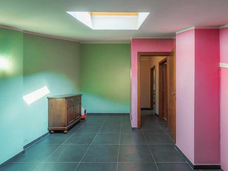 Già dall'ingresso si capisce che non è la solita soluzione: il piccolo terrazzino coperto esclusivo è uno spazio pratico e discreto, ideale per posare la borsa della palestra, la spesa o le scarpe al riparo. Un gesto quotidiano, ma che racconta già una casa pensata per semplificare la vita.