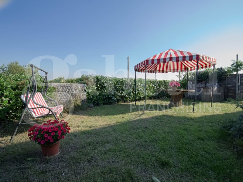 Ampissima sala con CAMINO e FORNO per IL PANE, CUCINA SEPARATA con portafinestra su giardino, ampia matrimoniale, bagno finestrato e 3 ripostigli.