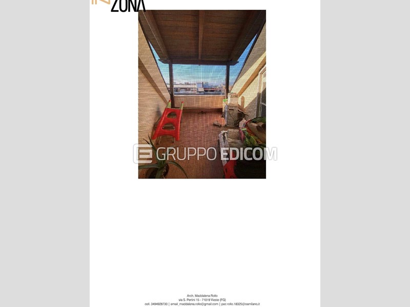 ASTA .---- prezzo and euro; 57.000,00 --- risparmio and euro;18.000\nAppartamento al piano nono sottotetto, interno 25 con una superficie commerciale di 80 mq. L'abitazione è caratterizzata da tre vani utili, cucina, un bagno e tre terrazzini a tasca. L'appartamento è caratterizzato da un ingresso sulla zona giorno sulla quale si affacciano la cucina, due camere da letto, il bagno e il ripostiglio. Essendo un sottotetto il soffitto è caratterizzato da una parte piana e da una parte spiovente con altezza minima interna pari a circa mt. 1,15. Classe energetica G.\n\nData vendita\n17/12/2025 - 17:00\n\nPrezzo base\n and euro; 75.500,00\nOfferta minima\n and euro; 57.000,00\n\nTi piacerebbe comprare una casa all'asta ma non sai come fare perché non sei un esperto?\n\nContattaci per avere maggiori informazioni su questo immobile e su come poterlo acquistare in totale sicurezza.\n\nINZONA offre un servizio di ASSISTENZA TECNICO - LEGALE per l'acquisto di immobili in asta attraverso queste attività:\n\nPRIMA CONSULENZA: Appuntamento presso la nostra sede di Foggia, presso il Centro direzionale E9 in Via Donato De Leonardis, 2 - 71121 Foggia (FG), per offrire chiarimenti sulle aste ed ascoltare le tue esigenze immobiliari.\n- Mediazione creditizia\n- studio fattibilità per la partecipazione in asta con mutuo fino al 100%\n- Studio della perizia e della documentazione dell'immobile\n- Accertamenti catastali per eventuali abusi edilizi\n- Accompagnamento Visita Immobile\n- Disbrigo pratiche per la partecipazione all'asta (anche solo compilazione della domanda)\n- Rappresentanza Legale il giorno della vendita\n- Rilascio del decreto di trasferimento in tempi brevi\n- Assistenza per il Saldo Prezzo\n- Compilazione F24 per Tasse\n- Disbrigo Pratiche per Eventuale Sanatoria\n- Assistenza alla Consegna Immobile\n\nContattaci per avere maggiori informazioni sull'immobile e su come partecipare all'asta.\n\n\n\n\n