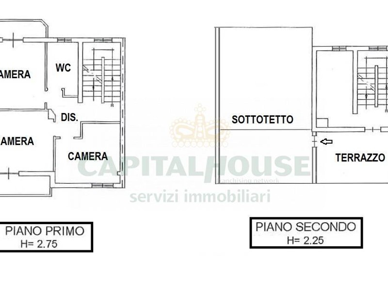 -piano secondo: 15mq terrazzo + 34mq di sottotetto;