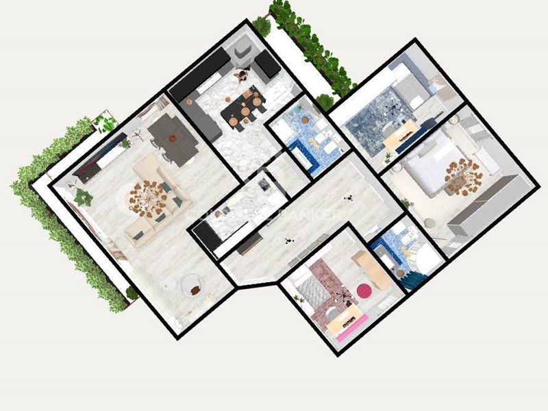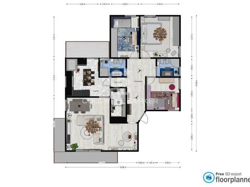 La zona notte comprende tre camere da letto di generose dimensioni, due bagni, e un ripostiglio comodo e funzionale.