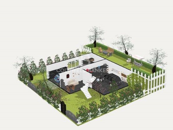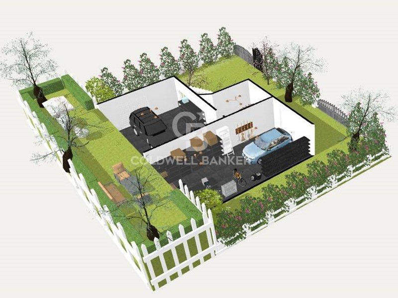 La cucina abitabile ha accesso diretto a un giardino privato a livello, perfetto per momenti di relax o per coltivare uno spazio verde personale.