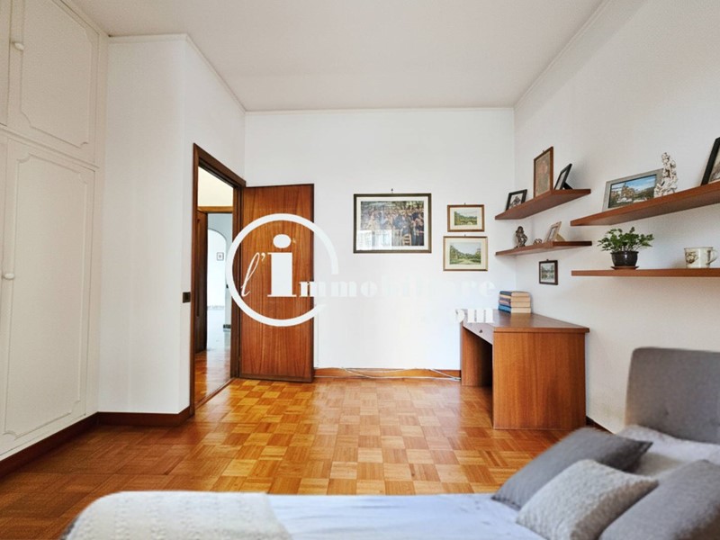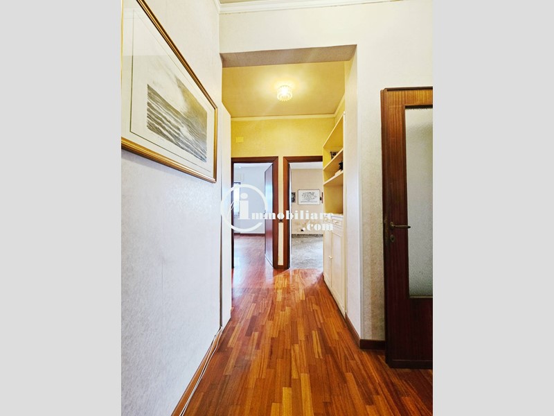 Gli ambienti sono così distribuiti: ampio ingresso, soggiorno, sala da pranzo, disimpegno, armadi a muro, cucina semi-abitabile, 2 camere da letto e servizio.