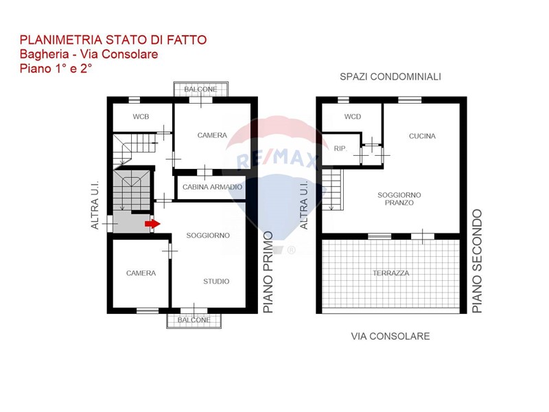 L'immobile si sviluppa su due livelli, con una superficie commerciale totale di circa 120 mq commerciali distribuiti: salotto/soggiorno, due camere da letto e un bagno al primo livello; da una scala interna si accede quindi al secondo livello, su cui insistono un comodo ripostiglio, un bagno e un'ampia e luminosa zona giorno con cucina a vista, che si apre su una comoda terrazza.