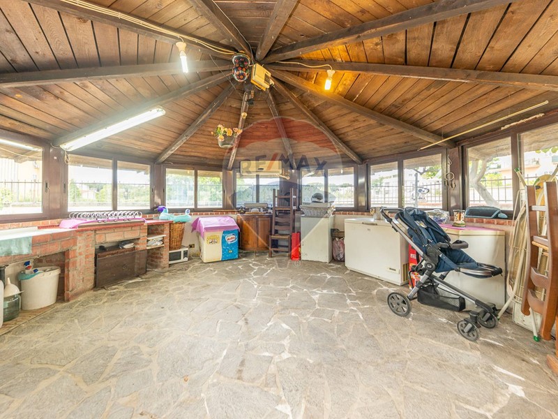 Dal Cancello di entrata in auto o a piedi, si accede direttamente al giardino privato di circa 800 mq, che circonda labitazione su tutti e quattro i lati (esposizione sud-est-nord-ovest) e ospita un elegante gazebo di 26 mq, attrezzato con cucina e barbecue ideale per pranzi e cene allaperto.