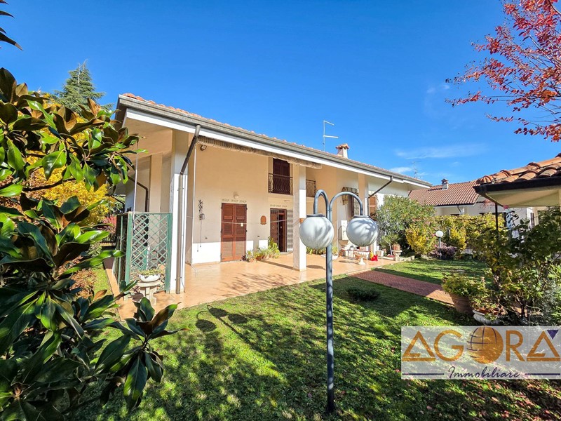 A Carbonara Scrivia, proponiamo in vendita villa, con portico e giardino. La parte abitativa, che si sviluppa tutta al piano terra, è così composta: ingresso, soggiorno, tinello con cucina a vista, due camere matrimoniali, due bagni di cui uno con vasca idromassaggio, e comodo ripostiglio. Salendo al primo piano, troviamo la mansarda, attualmente suddivisa in salotto con affaccio su balcone, secondo bagno e diversi locali di sgombero. Completano la proprietà, al piano seminterrato, una zona adibita a tavernetta, il locale caldaia, due locali ad uso ripostiglio ed il box auto. La proprietà si presenta in ottimo stato, con pavimenti in ceramica, inferiate, tende da sole, impianto d'allarme, e impianto d'aria condizionata al piano terra e al primo piano. Il giardino, in parte piantumato e con impianto di illuminazione, è il posto perfetto dove trascorrere momenti di relax all'aperto e organizzare pranzi e cene all'aria aperta.