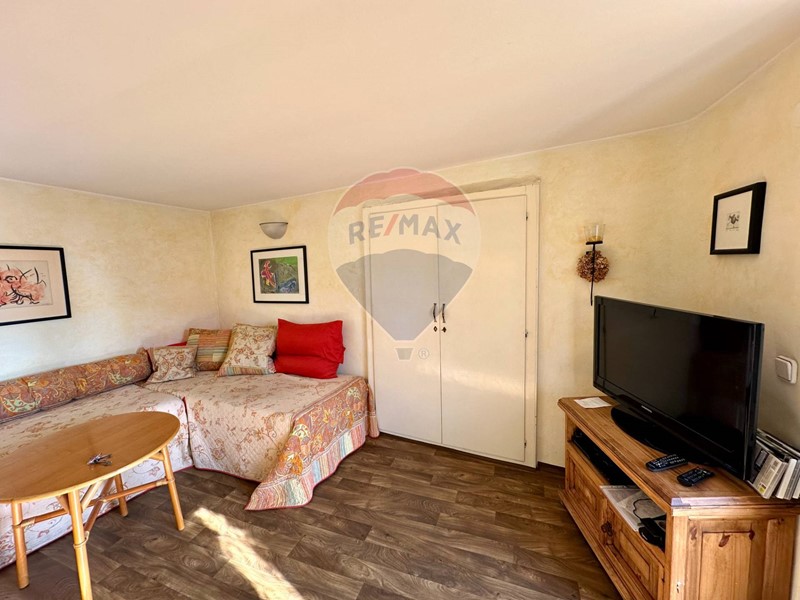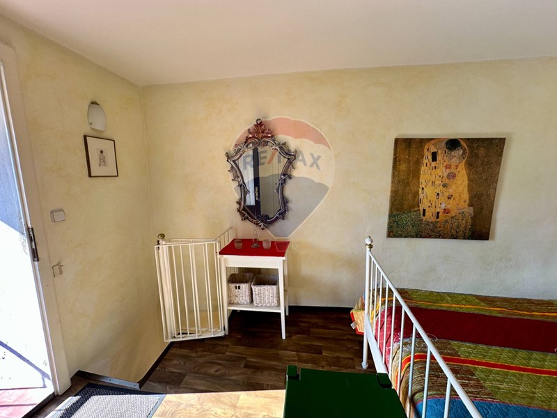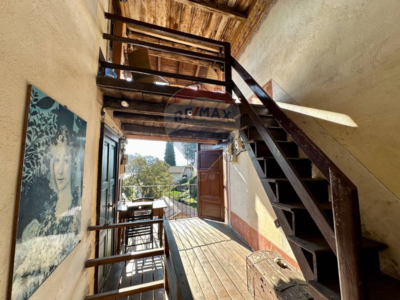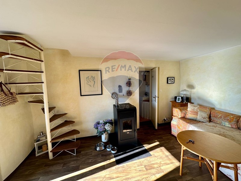 Laccesso alla casa avviene tramite un pianerottolo in uso comune con il vicino, che conduce direttamente alla cucina al piano terra, dotata di camino funzionante, perfetta per creare unatmosfera accogliente e conviviale. Salendo al primo piano tramite le scale esterne sempre in comune, si trova un salottino con stufa a legna e un bagno di servizio; questo ambiente raccolto e luminoso offre una vista sul lago, ideale per momenti di relax e tranquillità.