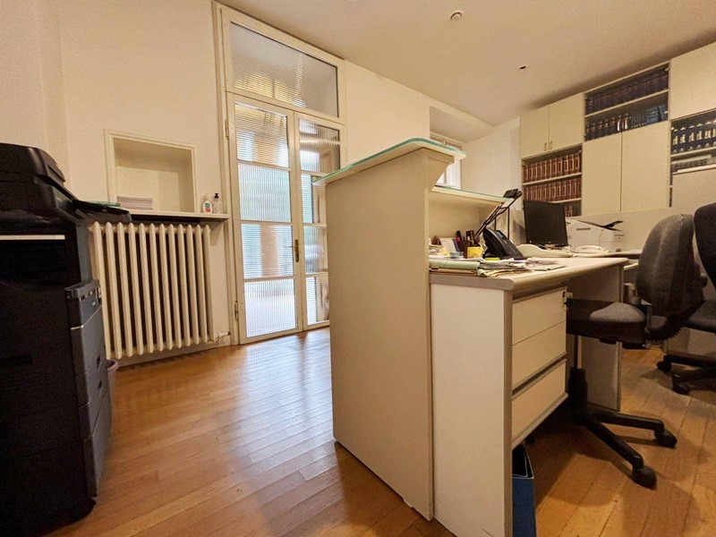 ADIACENTE AL TRIBUNALE - In una delle più fastose dimore settecentesche di Piacenza con meraviglio giardino interno piantumato di mq 2.200 ornato da colonne e fregi architettonici, in un Palazzo Storico commissionato nella seconda metà del 1600, tutelato dalla sopraintendenza delle belle arti, proponiamo un ufficio al piano terra adiacente al Tribunale. La residenza, dalla facciata con timpano centrale che sovrasta una zona a bugnato (raffinata opera rococò), è costituita dal consueto schema ad U con portico sui tre lati che si apre verso il giardino all'inglese delimitato da una balaustra in granito sulla quale sono poste statue rappresentanti le Stagioni. L'ufficio, ideale come studio legale o professionistico in genere, ha l'ingresso indipendente dal cortile comune. L'ufficio viene affittato parzialmente arredato, ed è composto da 4 stanze separate e doppi servizi, di cui una di reception e 3 ad uso ufficio. DISPONIBILE DAL 1 APRILE 2026, ma visitabile già da adesso.