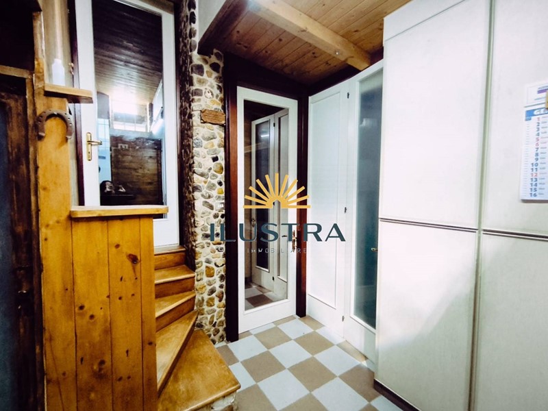 ampio soggiorno con angolo cottura e camino, due camere una matrimoniale e una doppia, un bagno finestrato con doccia.