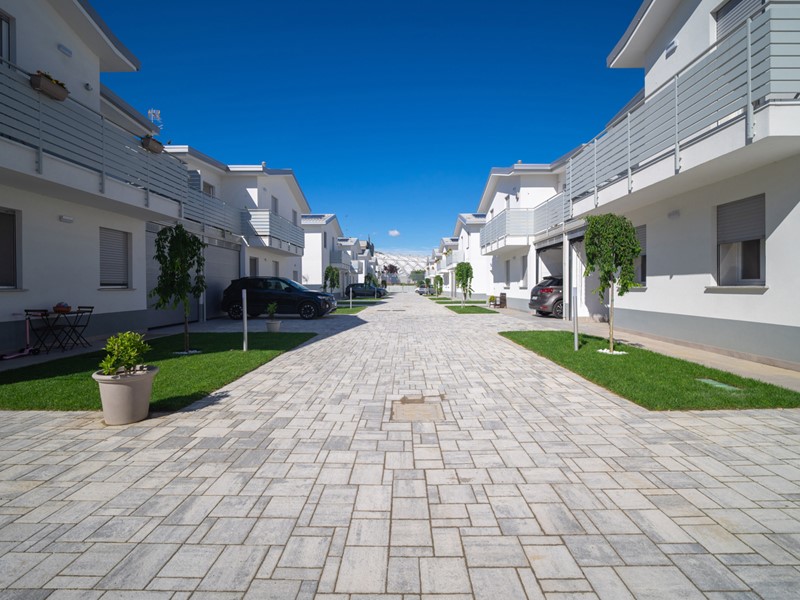 Ad.ze Viale Faenza - Via Teramo: Nelle immediate vicinanze del parco Teramo, in tranquilla e silenziosa posizione ma vicino ai principali servizi quotidiani, in splendido complesso residenziale di ville ultimato a febbraio 2024 VENDESI nostra esclusiva villa cielo/terra su due livelli di 4 locali mq 140 c.a. oltre a giardino di proprietà mq 114 c.a. e con accesso diretto all'appartamento box auto mq 19 c.a. on finestra il tutto cosi composto - al piano terra: Ingresso, ampia zona living con accesso al giardino, cucina con penisola anch'essa con accesso al giardino, bagno finestrato con vasca , box auto (possibilità di parcheggio seconda auto nella zona di proprietà esterna antistante allo stesso) - Al primo piano: Tre camere da letto di cui due con cabina armadio, grande bagno finestrato con angolo lavatrice/asciugatrice e ampia balconata di mq 21 c.a.