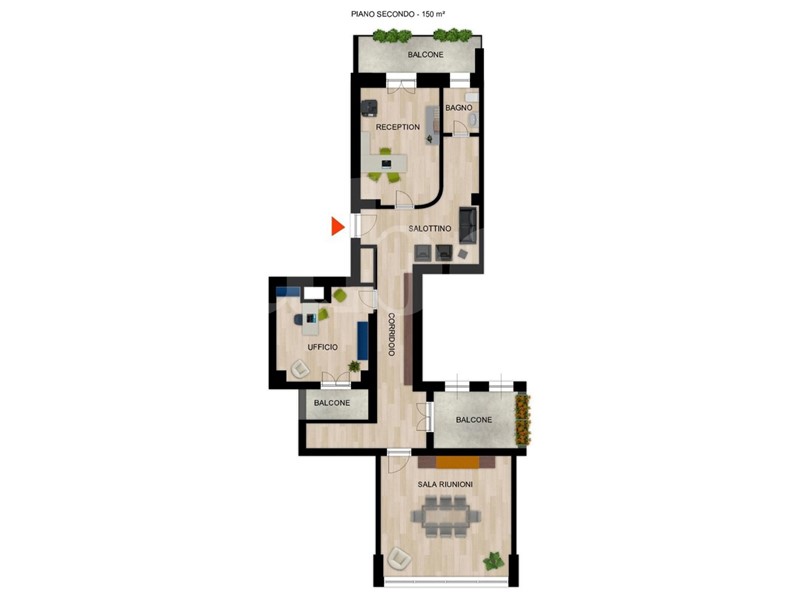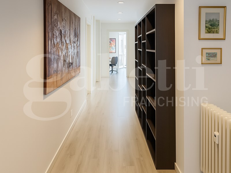 Con i suoi 149 mq, l'immobile si articola in quattro locali ben distribuiti, tra cui una sala riunioni con ampie vetrate che incorniciano la città e lasciano entrare la luce naturale per tutto il giorno.