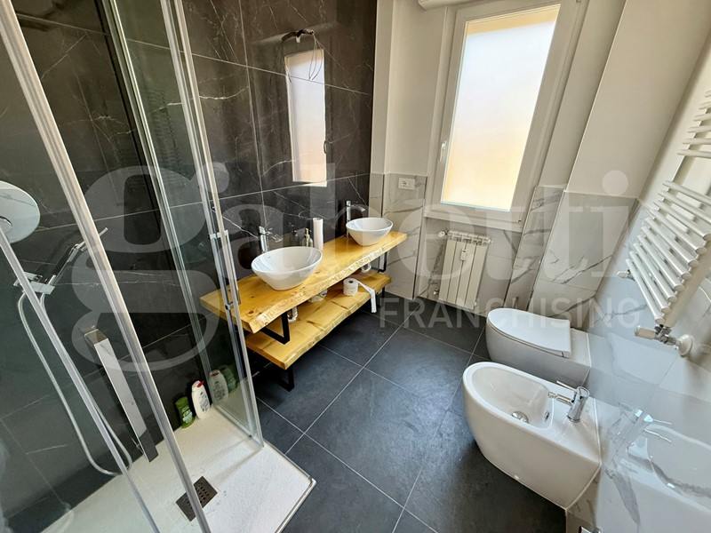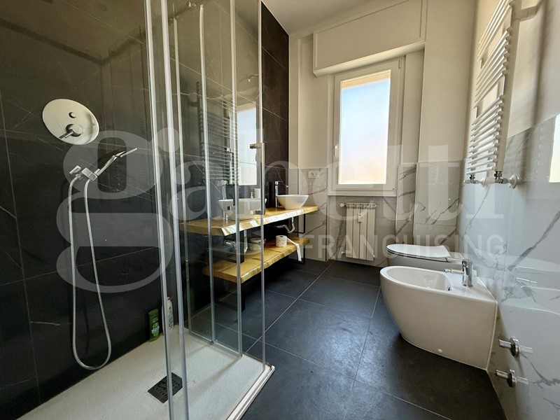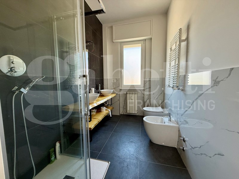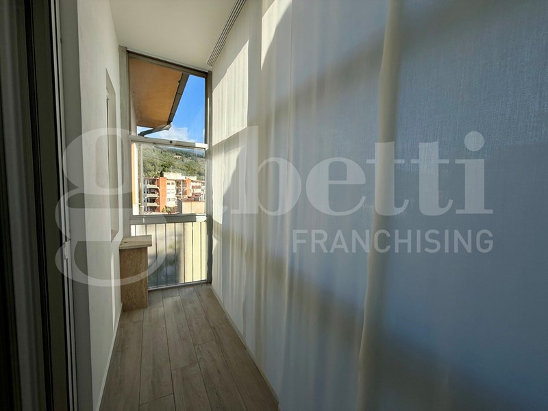 Appartamento ristrutturato posto al quinto e ultimo piano con ascensore, cosi composto: ampio ingresso, cucina abitabile con accesso alla terrazza verandata, ripostiglio, soggiorno, 2 camere matrimoniali con accesso ad altra terrazza, bagno finestrato. Al piano sesto grande terrazza panoramica di mq. 65, di proprietà esclusiva.