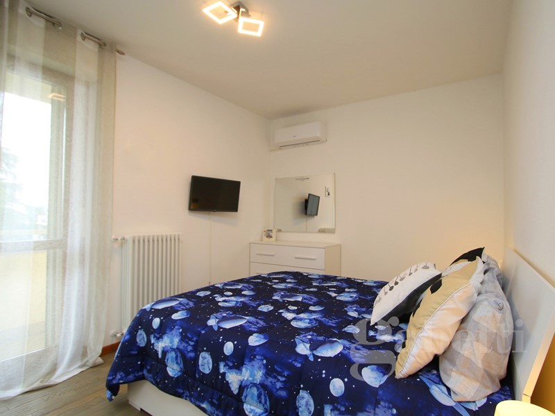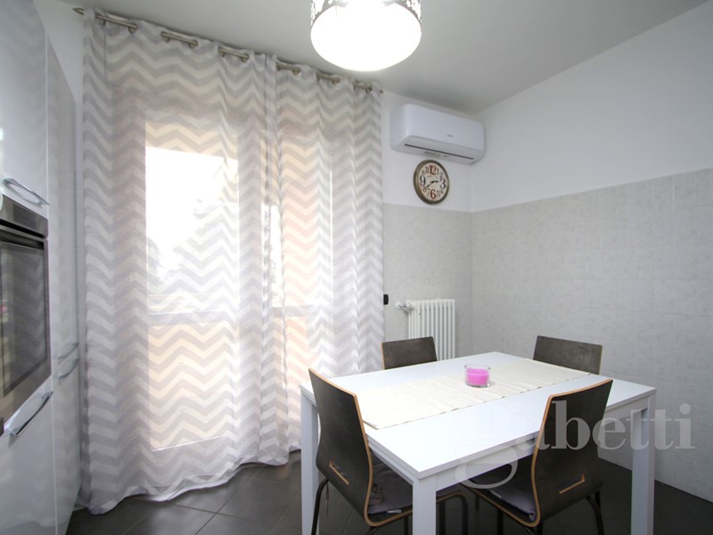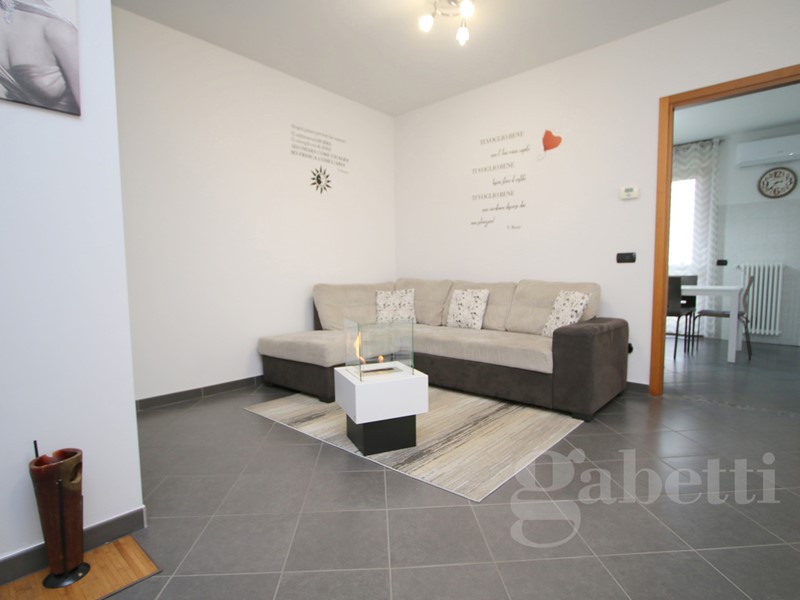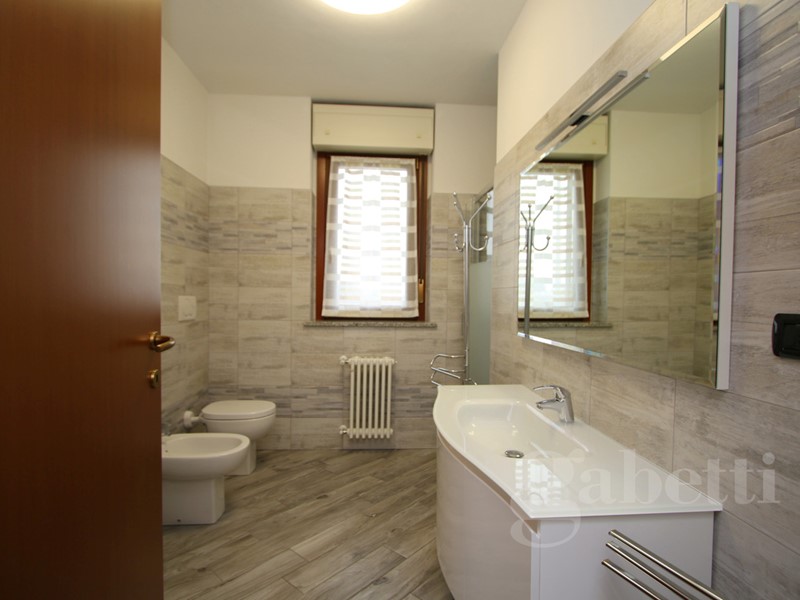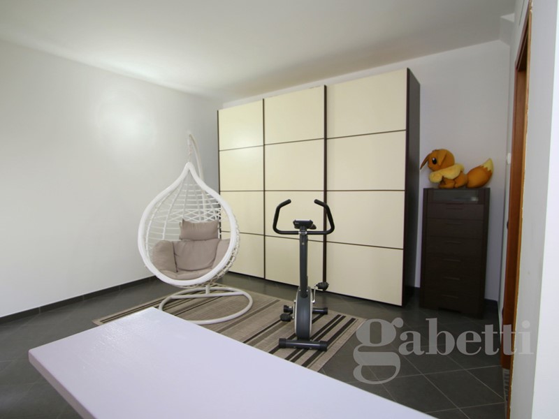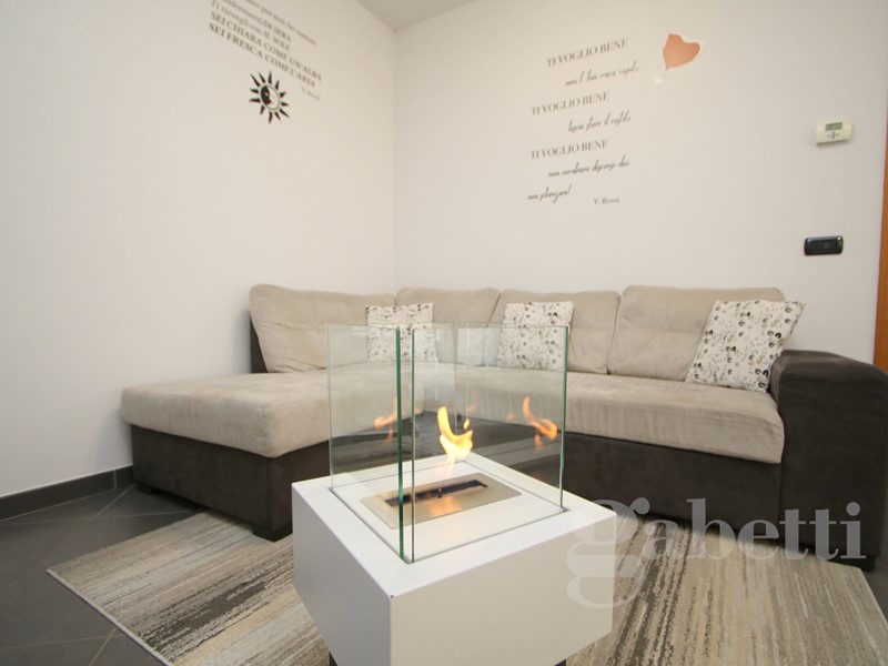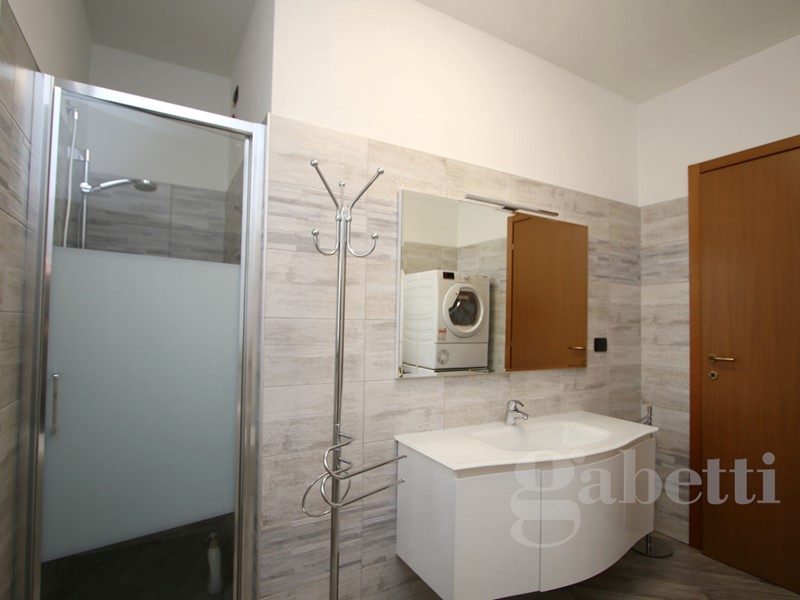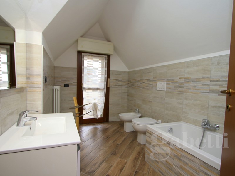 Pavimentazione in grès porcellanato nella zona giorno e parquet nella zona notte.