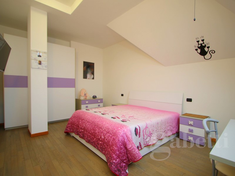 Al piano si trovano anche la cucina abitabile con balcone, il bagno con doccia e la grande camera matrimoniale.